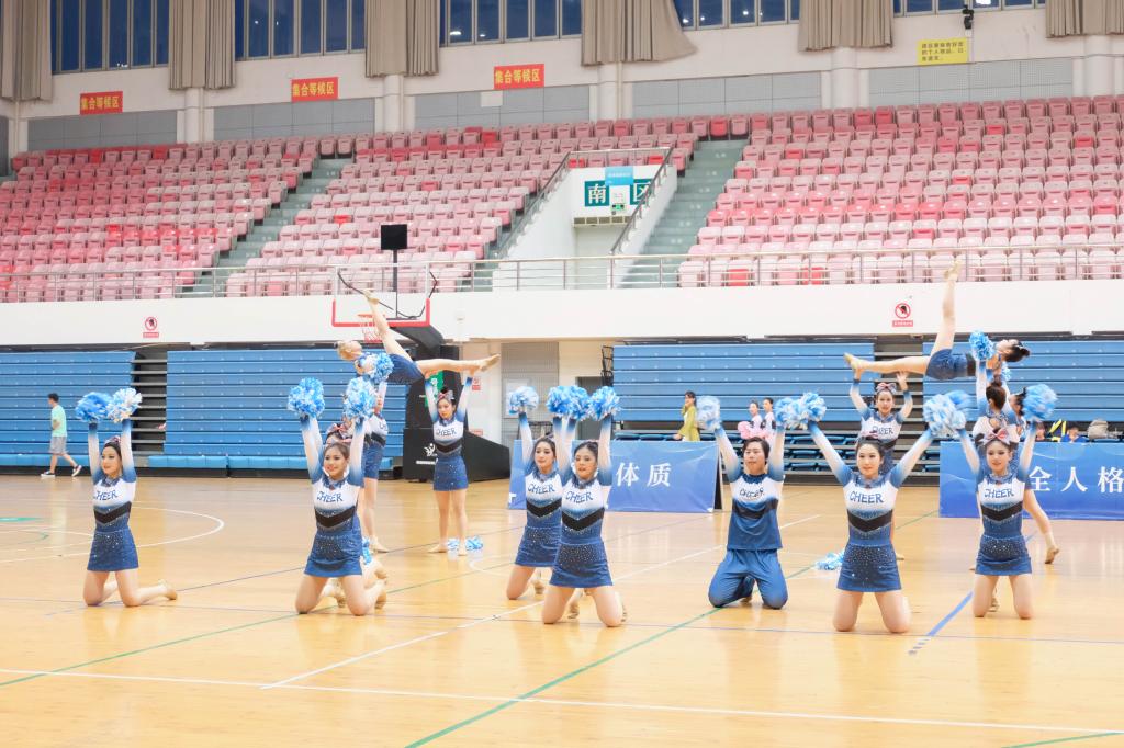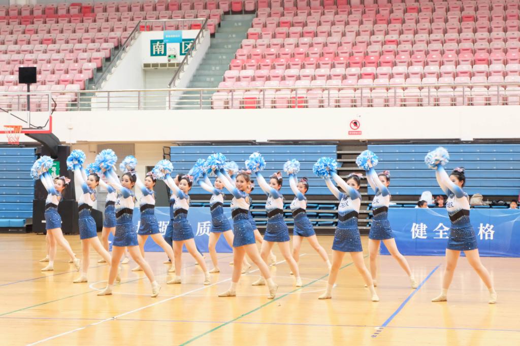 比赛在一段段动感的音乐中拉开帷幕,动科动医学院第十位登场,啦啦操队员们面带笑容,,用凝练而有力的舞蹈动作,展现出专业技巧和精湛的表演能力。表演过程中,观众席不间断地响起热烈的掌声和欢呼声。他们被队伍的精湛表演所折服,赞叹不已,尽情享受着精彩的舞蹈和动感的音乐。