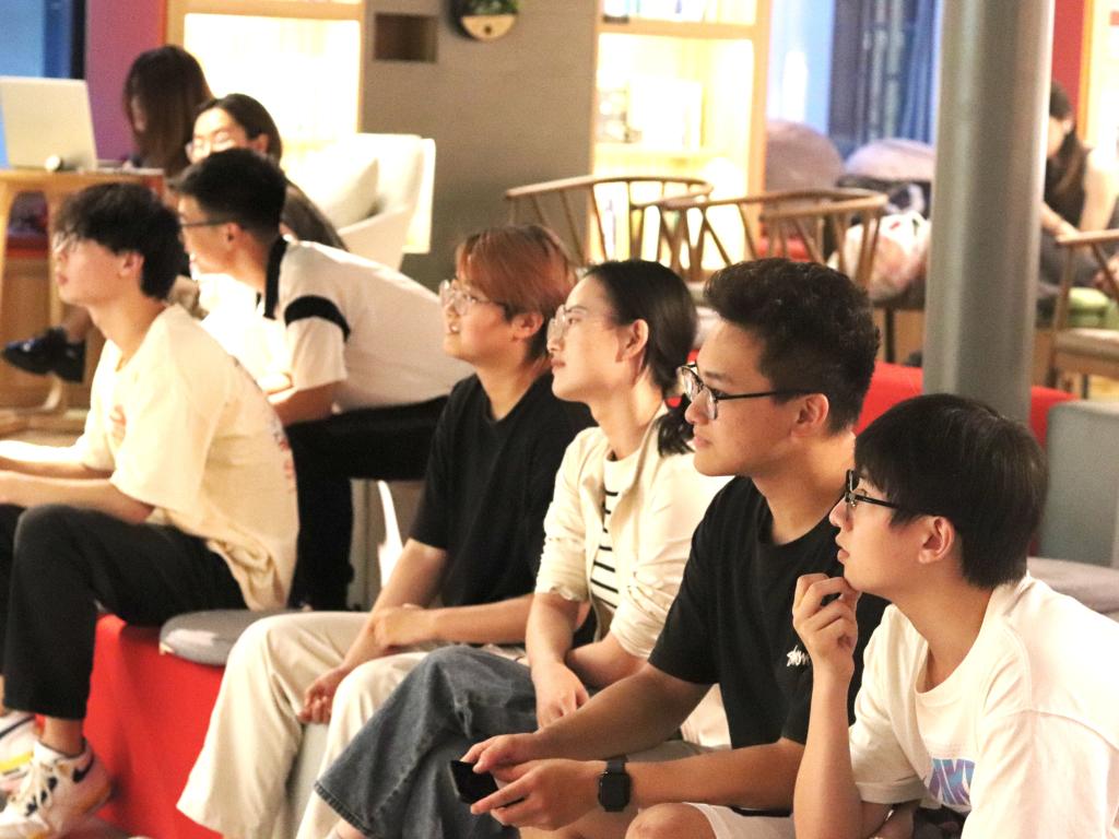 故事分享环节中,第一组组员王明昊以“生命”“向日葵”“游戏”等为关键词,通过讲述自身的假期经历,表达了向日葵虽在黑暗时会低下“头颅”,但当有一缕晨曦照射时,便会挺立起来的道理。第三组则提出了“水杯精灵”的创意,展现了对现实与虚拟世界的奇妙想象。分享结束后,现场进行了二维码投票评选,主持人根据排名结果为到场同学分发奖品。