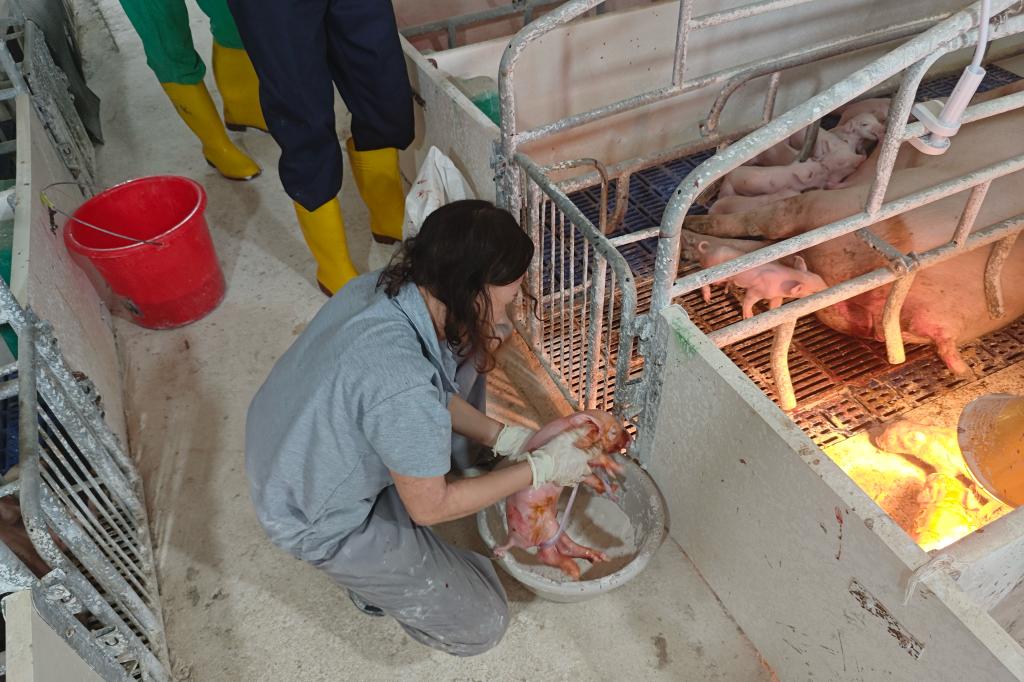 更为难得的是,团队在学习过程中恰逢了猪场员工接产仔猪,这一场景让学生们深刻体会到仔猪选育在猪的养殖环节中的至关重要性。王锟在介绍仔猪选育过程指出,仔猪的选育涉及到保育、育肥、测定、饲料和环境等多个要素的协调配合,每一个环节的优化都直接影响到养殖效率和养殖质量。