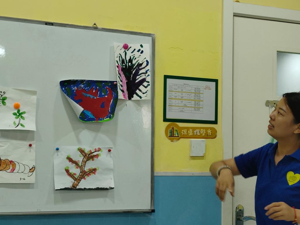 当问及教学方法时,小丽指出要根据孩子的特点进行个性化教学,她热情地对团队分享:“你们看这个孩子,他有很高的警惕性,有人稍微靠近,他就会产生自我保护措施,所以在上课过程中要时刻耐心安抚。”