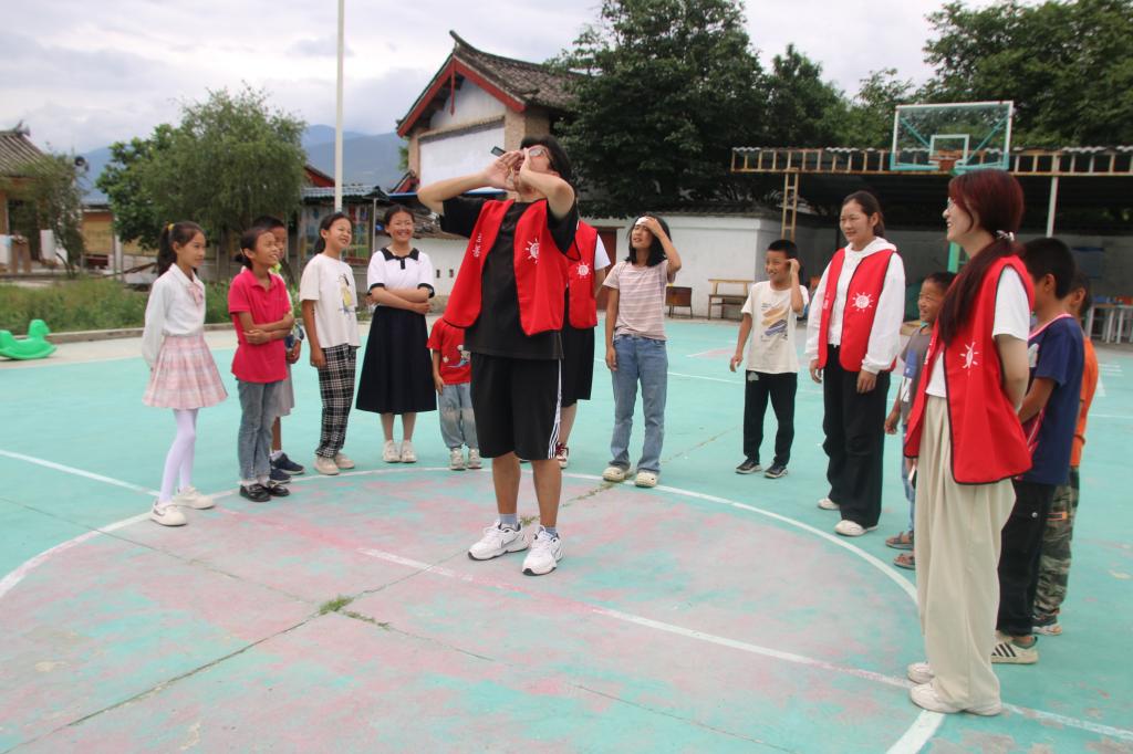 活动的高潮部分,樊一带领孩子们和实践队队员走出教室,面向广袤的大山,鼓励他们大声喊出自己内心的声音。这一环节不仅让孩子们和实践队队员释放了内心的压力与负面情绪,还教会了他们一种积极面对生活挑战的方式——勇于表达自我,寻求心灵的释放与平衡。随着他们的呼喊声在儿童之家内回荡,积压在心底的沮丧与郁闷仿佛也随之消散,留下了满心的轻松与愉悦。