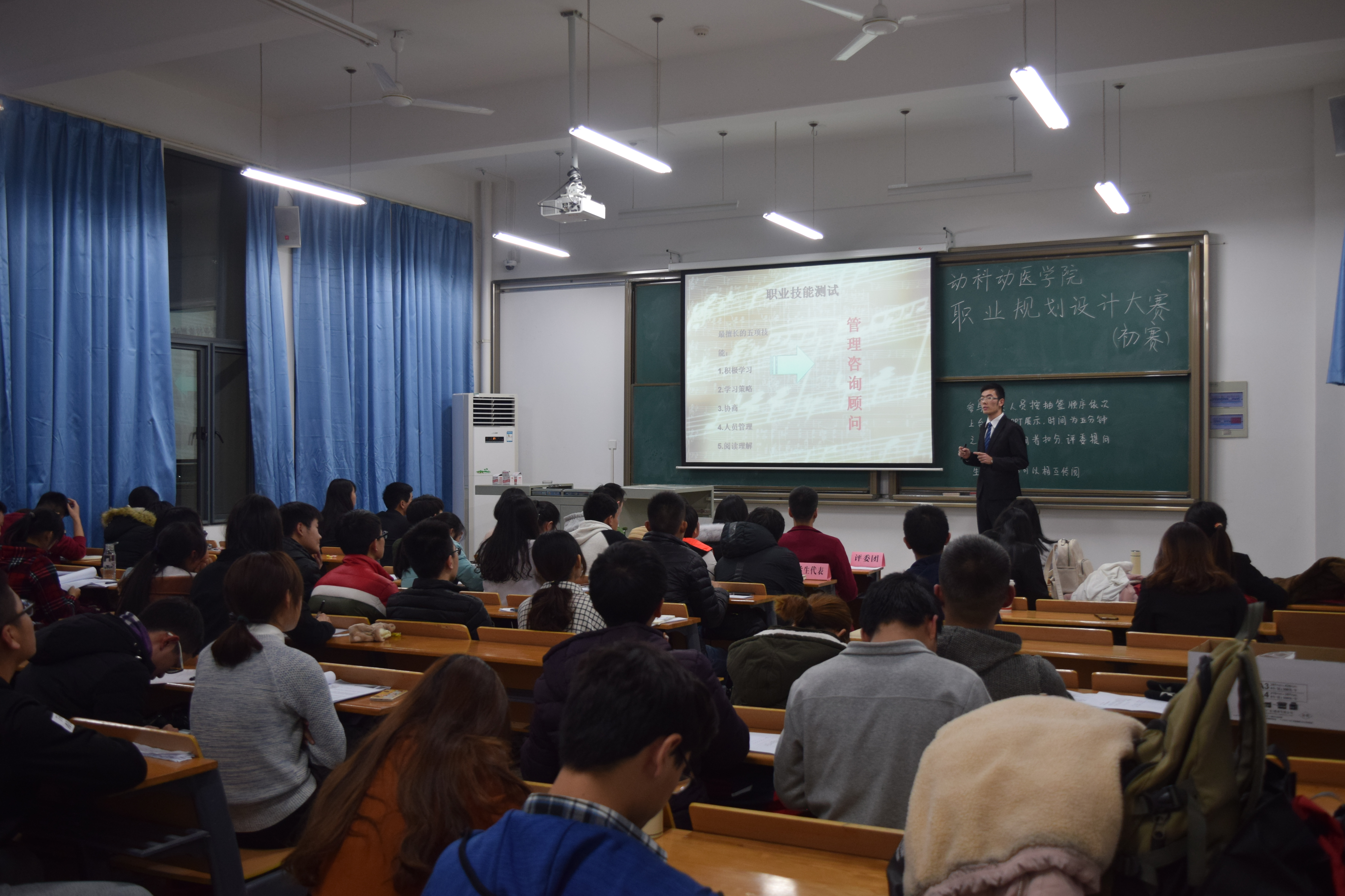 (通讯员:王瑞珍)11月28日晚,由云顶国际4008am职业生涯规划部举办的动科动医学院职业规划设计大赛初赛在四教C307顺利举行。辅导员刘德志、慕艳娟及上届职业规划设计大赛获奖选手梁嘉钰、孔德万、梁浩担任评委。