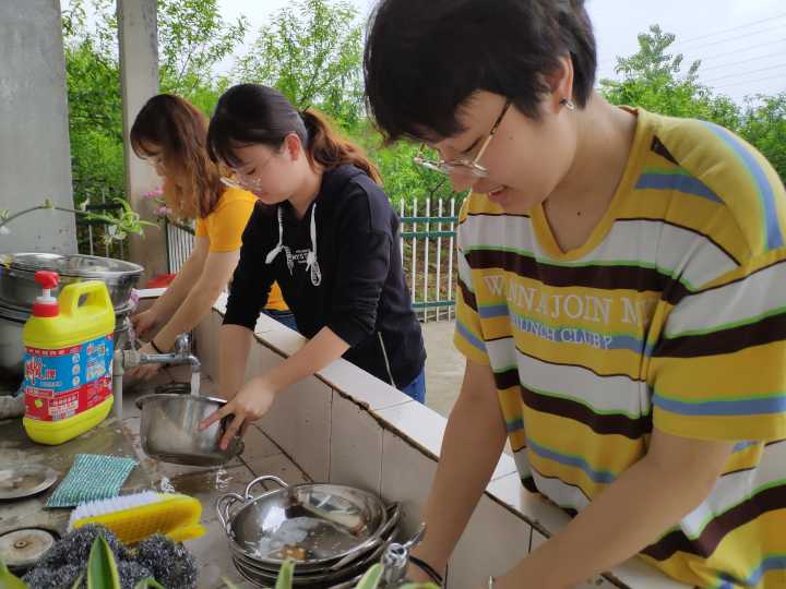 同学们在洗锅碗瓢盆
