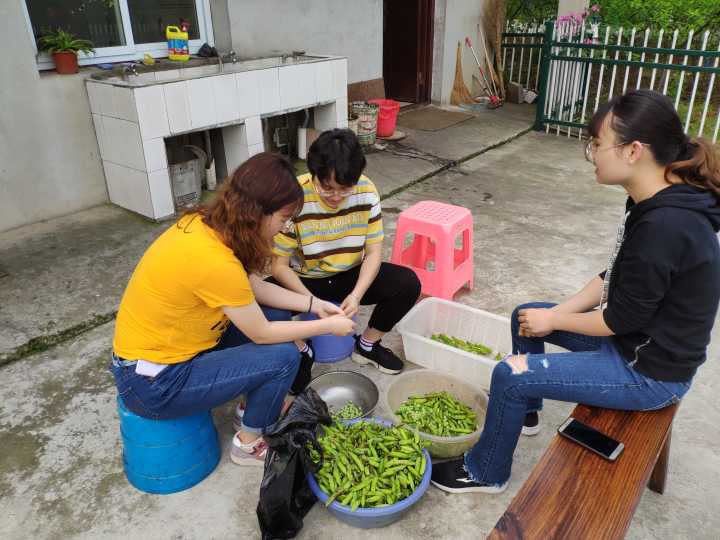 同学们在剥豌豆