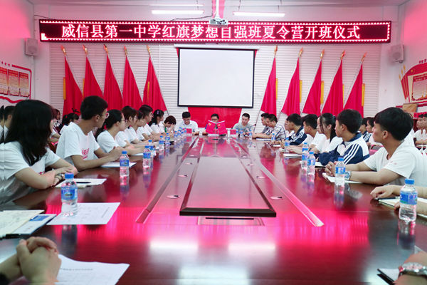 (通讯员:王聪 段佳怡 摄影:江易航)7月18日上午,点亮未来·红旗梦想高中自强班夏令营开营仪式于威信一中致用楼五楼会议室正式举行。威信县教育局教育督导室副主任晋崇智、威信一中校长李映桥、副校长白鸽、云顶国际4008am渡雁支教团指导老师及团队成员出席仪式。自强班全体五十名同学和学校相关处室人员一同参加仪式。