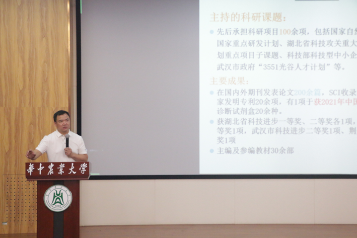 周祖涛副教授介绍微生物与免疫方向的科学概况及各导师研究方向。他表示,本团队依托农业微生物资源发掘与利用全国重点实验室、湖北省预防兽医学重点实验室、兽用发酵原料药与制剂湖北省工程研究中心等诸多优秀平台,经过各师生多年的努力形成了兽医微生物学、兽医免疫学、有益微生物研发三大技术平台,在文章产出、科研转化等方面取得诸多成果。