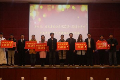 党委书记刘兴斌对企业家们的到来表示热烈欢迎,他表示,自设立奖学金、开办企业家论坛以来,学校与企业不断深化合作,逐渐形成了独具特色的、以“创新、创造、创业”为核心理念的院企联合模式,望今后能与企业共同谱写人才培养、科学研究、社会服务全面协同的新篇章。院长赵俊龙教授宣读《关于表彰2015-2016学年度企业奖学金获奖先进集体和个人的决定》,由与会领导及各企业家向156个获奖集体及个人颁发荣誉证书。