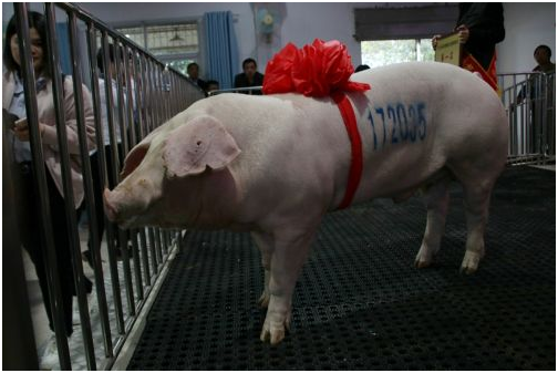 本届拍价最高的种猪(学通社记者 何卉 吴毅博 摄)
