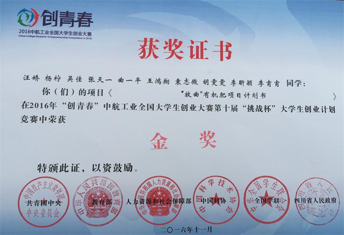 11月19日下午,2016年“创青春”全国大学生创业大赛终审决赛成绩揭晓,云顶国际4008am动物医学专业学子汪娇领衔的创业团队以《“牧曲”有机肥计划书》作品的出色展示,赢得评委的一致好评,摘得创业计划类项目金奖。这也是继2012年王文涛团队在上海获奖后云顶国际4008am再次夺得这一比赛的金奖。