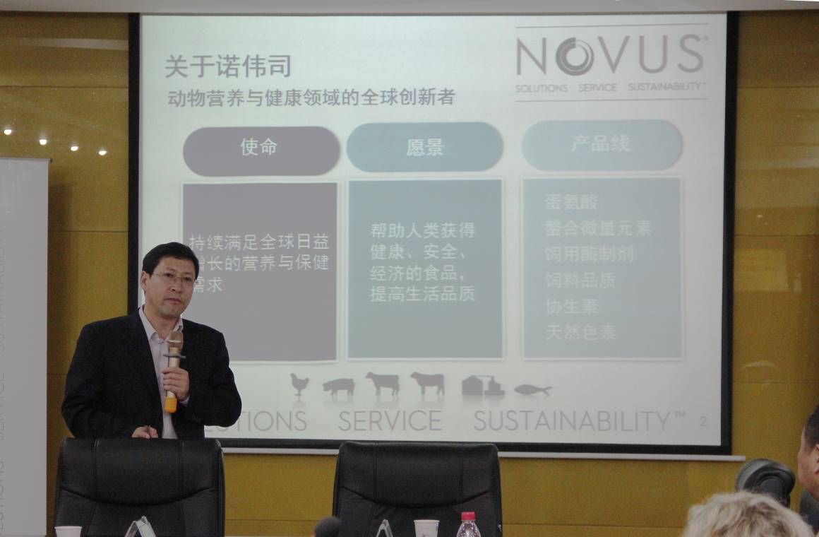 张成健在欢迎辞中对诺伟司公司给予的合作机会表示感谢,祝贺获奖研究生。他表示,诺伟司国际公司是业内知名企业,荟萃了优秀的团队,希望与之展开更进一步的沟通交流,力争在校企合作方面再创辉煌。随后,孙得发向大家介绍了诺伟司国际公司和NGS项目(诺伟司国际优秀研究生奖学金项目)。他讲到,诺伟司是一家注重研发、高科技、高效的企业,公司10%以上的人员是从事相关研究的科学家。2006年NGS项目正式启动,设立NGS项的目的,是“科学为本,挖掘菁英”,鼓励动物营养及与营养相关领域的学生从事优势研究项目。