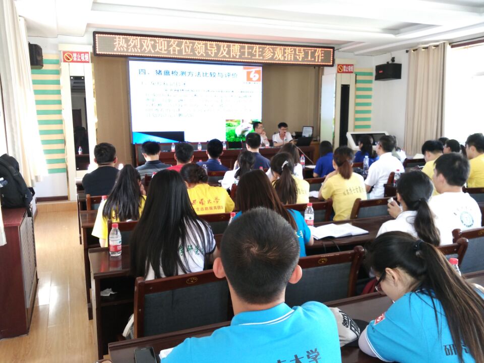 参观完毕后,我校动科动医学院研究生罗友连同甘肃农业大学博士生针对靖远县牲畜养殖现状共同进行了有猪瘟和牲畜布病的专题报告。在本次讲座中,我校动物科技学院兽医专业的硕士研究生罗友对猪瘟进行了报告。他主要从猪瘟流行特点、临床症状、检测方法比较与评价、及猪瘟防控措施做了汇报。生动有趣的讲解让我们进一步了解了猪瘟的临床症状。也对猪瘟抗体水平低下的原因做出了详细的讲解和说明。本次技术讲座的目的在于对该县的虎红平板凝集实验检测转阳率偏低、猪瘟抗体水平偏低提出建议和对策,并对该县技术人员进行培训,得到了当地领导和科技人员的好评,对进一步解决当地牲畜布病和猪瘟提供了针对性的指导,也使在座的同学们受益匪浅。