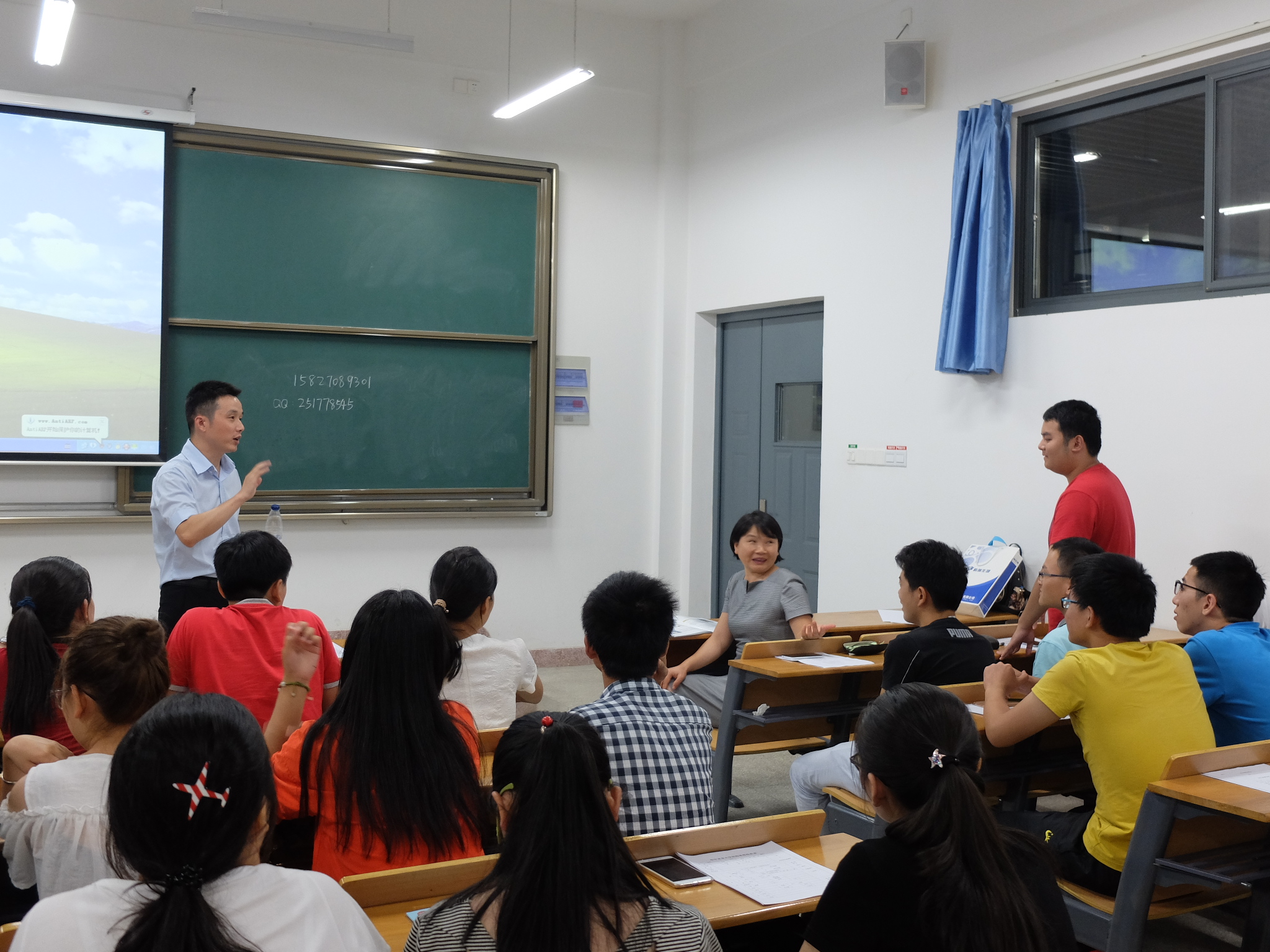 当日晚上,企业班主任深入课堂,召开了以“创业启蒙”为主题的班会。他们分享了自己的创业经历并耐心解答了新生有关就业及创业方面的疑问。对于学生最关心的就业前景的问题,动医1602班企业班主任陈建军说道:“畜牧行业前景可观,是否好就业还是要看个人能力,大家要提前做好规划,把握当下,通过学习来提高思想境界,为将来的就业或创业打下基础。”动医1605企业班主任李曜华也表示,“这个行业的发展需要大量人才,所以同学们只要学好专业,就是你们选择企业而不是企业选择你们。”同学们都积极地与班主任展开交流,现场气氛十分活跃。?