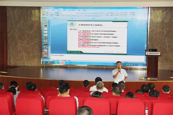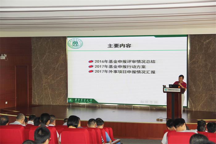 (通讯员:满秋、杨慧 供图:李浩宇、刘焕)9月1日下午,动科动医学院2017年国家自然科学基金申报动员会在生猪健康养殖协同创新中心大楼学术报告厅举行。学院领导班子成员刘兴斌、赵俊龙、张成健、周锐、曹胜波、李育林、胡丽华和全院教职工参加了会议。会议由院党委书记刘兴斌主持。