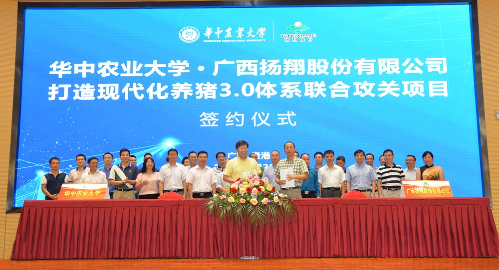核心提示: 7月25日至27日,我校校长邓秀新、副校长姚江林率部分职能部门及学院负责人、专家赴广西壮族自治区贵港市广西扬翔股份有限公司,签署校企合作打造现代养猪3.0体系联合攻关框架协议、捐赠协议、分子育种与繁殖新技术研发与推广合作协议。