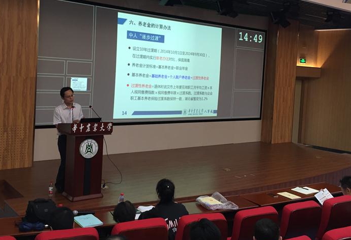 杨少波处长首先对机关事业单位养老保险改革的政策依据、实施范围、缴纳方式、计算办法等主要内容进行了介绍,并对基本工资标准调整和养老保险代扣待缴作出了详细说明。他指出,养老保险改革是国家的一项重大改革举措,政策性强、涉及面广,学校将在政策允许范围内,始终把教职工利益最大化放在第一位,希望广大教职工能够理解、支持和配合,把这项关系到每个教职工的切身利益的工作落实到位。