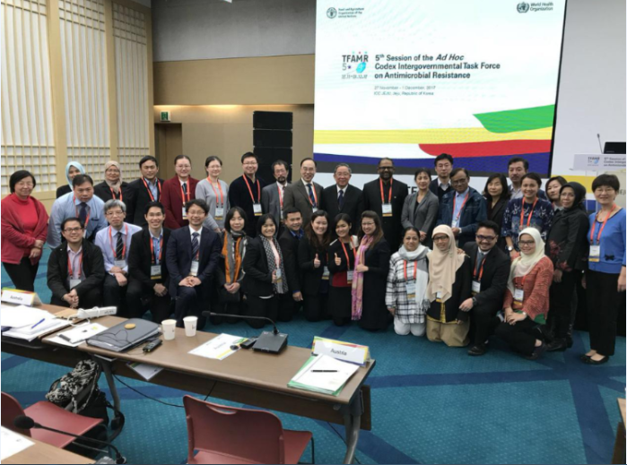 南湖网讯(通讯员程古月)国际食品法典委员会(CAC)抗微生物药耐药性政府间工作组(TFAMR)第5届会议于2017年11月27日至12月1日在韩国济州岛召开。来自44个成员国、1个成员组织(欧盟)、以及联合国粮农组织(FAO)、世界卫生组织(WHO)和世界动物卫生组织(OIE)等11个国际组织的近160位代表出席了会议。我国代表团由云顶国际4008am、华南农业大学、国家食品安全风险评估中心、山东省农业科学院、浙江省农业科学院、香港食物环境署、香港食物及卫生局等单位的10名专家组成,我校云顶国际4008am袁宗辉教授为团长率中国专家团队出席了此次会议。