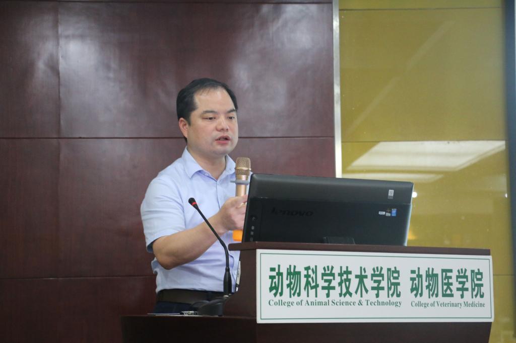 陈焕春为本次交流会致辞。他表示,当今国家亟需科技创新,重点在于人才培养与建设。对于胸怀大志的青年教师们,既是机遇也是挑战。在凝炼自身学术研究方向的同时,需要从国家重大需求出发,将基础研究转化为行业应用,力争解决生产实际问题。他希望,各位老师能够谨记坚持科研初心,抓准紧握学科重点,充分利用多方资源,积极开展合作交流,脚踏实地投身科研,努力建成养殖强国,为实现中华民族伟大复兴做出更大的贡献。
