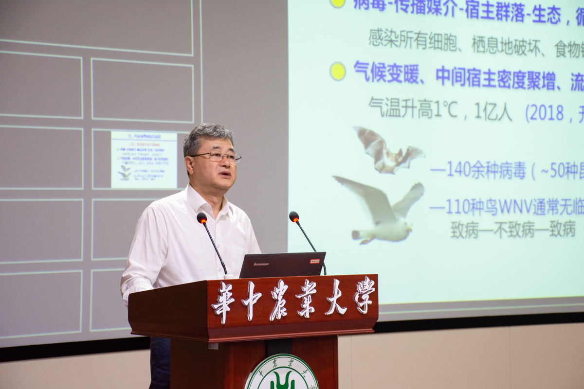 南湖网讯(通讯员 詹雅雯 李靖宇,供图 赵婉玥)9月6日下午,中国工程院院士、中国人民解放军军事医学科学院军事兽医研究所金宁一研究员做客我校动科动医学院“创新、创造、创业”高端论坛,在农业微生物国家重点实验室B座103报告厅作了题为“共患病毒病与防控”的报告。本次报告会由动科动医学院院长曹胜波主持。