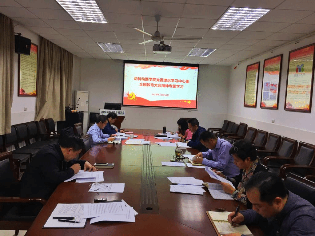 (通讯员 常帅)10月30日晚,学院党委在动科楼B105召开理论学习中心组会议,专题学习全国教育大会精神。学院党委理论学习中心组相关人员参加了学习研讨。学习活动由学院党委书记刘兴斌同志主持。
