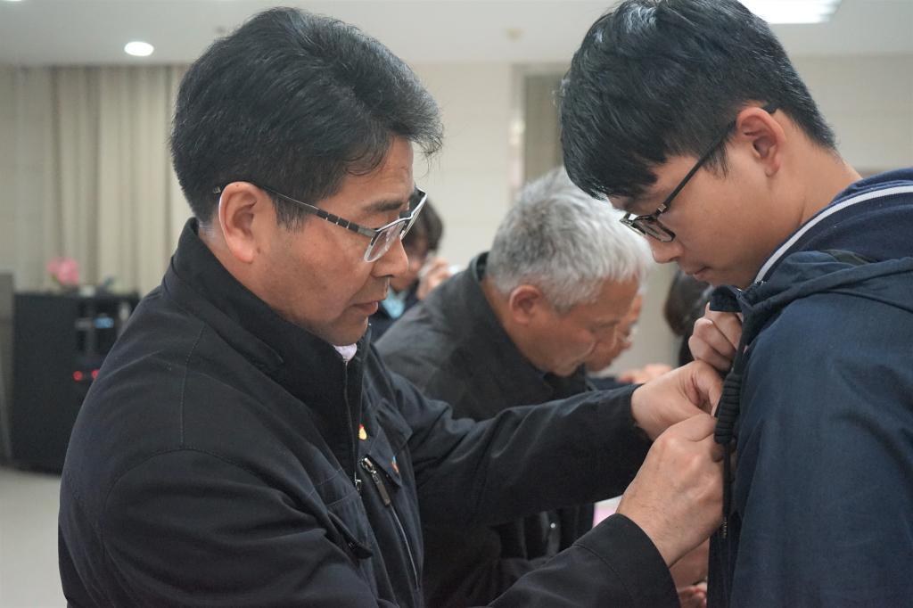 一曲《国际歌》奏毕,新发展党员在辅导员刘德志的带领下进行宣誓,重温入党誓词。老党员应邀向该院40多名研究生和本科生新发展党员配戴了党徽。随后,5位研究生和本科生新党员畅谈了自已入党的体会,老党员谭祜德、刘松年、孙骥、鲁大安结合自己的感受,对新党员的发言进行点评,希望他们入党后加强学习、不忘初心、进一步增强党性、加强理想信念、争做合格党员,为实现伟大的“中国梦”贡献青春。张成健总结道:“新时代新担当,党的一路坎坷发展,新发展党员应牢记使命,不忘初心。”