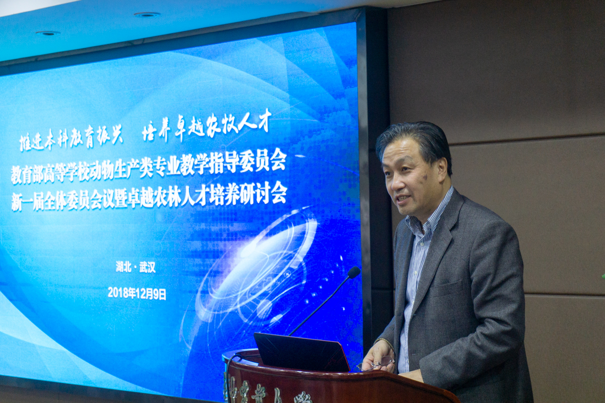 随后,副主任委员、东北农业大学包军教授传达了教指委成立大会上教育部部长陈宝生、副部长林蕙青的讲话精神。他进一步强调,振兴本科教育要从教师和学生两方面着手,严抓课堂,严管学生,让教师潜心教书育人,让学生认真求知问道。副主任委员、中国农业大学呙于明教授传达和解读了教育部高教司司长吴岩的讲话,强调了全面振兴本科教育所要确定的基本方针、发展途径和重要举措。华南农业大学张永亮教授作了题为“农科高校双创人才培养的创新与实践”的报告。他在报告中指出,“双创”人才培养是农业产业发展的需要,加强“双创”教育是高校人才培养的核心要求,要将“双创”教育作为高校人才培养的核心要求,加以推广应用,让改革成果得到广泛认可、改革模式形成有效示范、改革成效赢得社会关注。副主任委员、内蒙古农业大学芒来教授报告了动物科学专业实践教育的现状和培养模式研究进展,提出“动物科学专业未来发展必须以能力培养为核心,坚持理论与实践相结合”的发展思路。副主任委员、南京农业大学刘红林教授依照三级专业认证标准介绍了农学类二、三类认证指标在师资队伍、质量保障、学生发展、特色发展等方面的内容。副主任委员、浙江大学汪以真教授从总则、任务、组织等七个方面逐条解读了《2018-2022年教育部高等学校教学指导委员会章程》的基本内容。秘书长、我校蒋思文教授对《动物科学专业教学质量国家标准》进行专业解读。他指出,动物科学专业教学质量国家标准的制定为动物科学专业的建设提供了行动指南和质量目标,需要在今后一段时间内深入贯彻、推行。