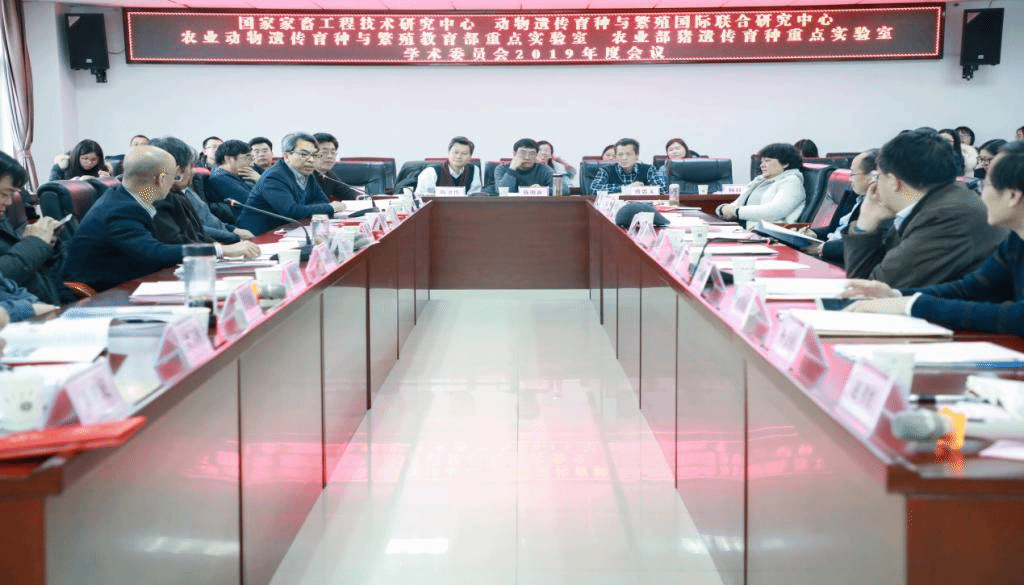 (通讯员张萍)1月11日,国家家畜工程技术研究中心、动物遗传育种与繁殖国际联合研究中心、农业动物遗传育种与繁殖教育部重点实验室、农业农村部猪遗传育种重点实验室,在我校生猪健康养殖协同创新中心联合召开学术委员会2019年度会议。来自四个平台的学术委员会委员、固定人员以及我校师生参加了会议。中国科学院院士黄路生教授、中国科学院院士桂建芳研究员、中国工程院士陈焕春教授,农业农村部猪遗传育种重点实验室学术委员会主任、中国农业大学张沅教授等20余位校内外知名专家出席了会议,我校党委副书记、副校长姚江林出席会议并讲话。会议由赵书红教授和中国科学院院士黄路生教授主持。