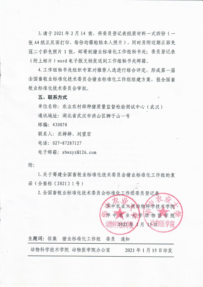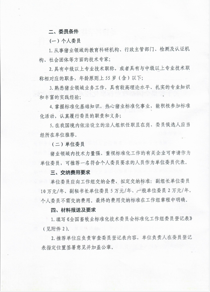 关于征集全国畜牧业标准化技术委员会猪业标准化工作组委员的通知