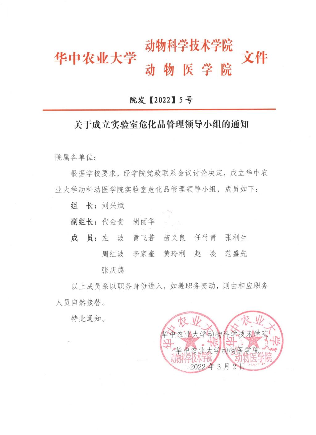 关于成立实验室危化品管理领导小组的通知