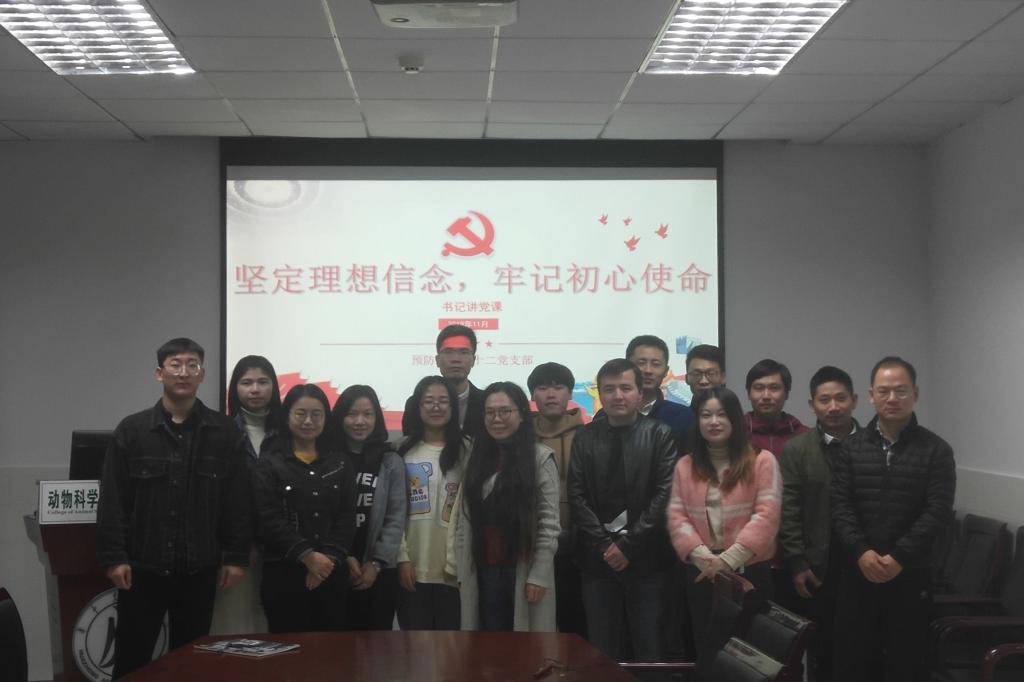 (动科动医学院通讯员 陈玉坤)2019年11月20日,动科动医学院预防兽医研究生第十二党支部在动科楼B105开展“支部书记讲党课”主题教育活动。活动由支部书记杨承杭同志主持,部分积极分子和全体党员参加。本次“支部书记讲党课”主题教育活动主要围绕“坚定理想信念,牢记初心使命”为主题开展。