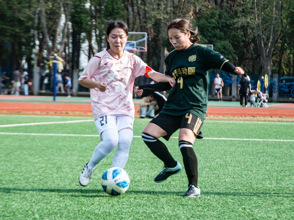 易边再战,4号王明瑶成功突破文法学院队防线,以一记射门,为动科动医学院队取得了1:0的领先优势。文法学院队迅速调整策略,积极组织进攻。动科动医学院队门将吕英琪稳定发挥,接连化解了文法学院队的进攻。终场哨响,动科动医学院以1:0的比分赢得比赛。