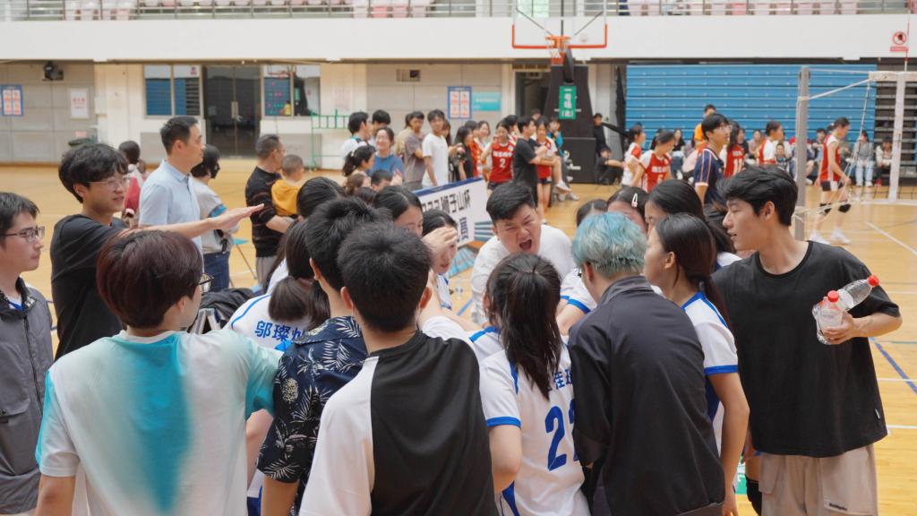 易边再战,动科动医学院女排乘胜追击,再次以大比分拉开差距,园林学院女排申请暂停,而后双方你来我往,园林学院女排紧追不舍,双方比分逐渐接近。再次暂停过后,7号李佳科扣球,园林学院女排发球失误,动科动医学院女排连得两分。