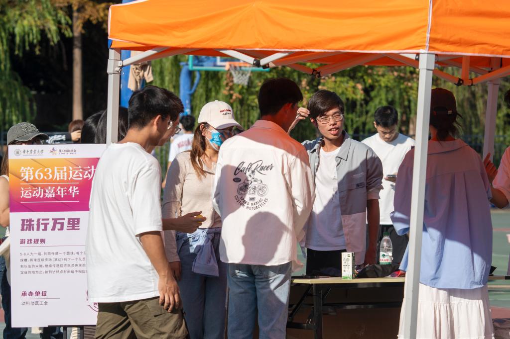 (通讯员:刘美哲 甘宵雨 摄影:罗睿妍)金秋十月,桂花飘香。我校校运会运动嘉年华于10月18至19日在东运动场篮球场举行,旨在为紧张参赛的运动员及观赛的师生提供一个放松心情、舒缓压力的乐园。其中,动科动医学院举办的“珠行万里”项目,以其新颖的规则、有趣的游戏体验深受广大师生的喜爱。